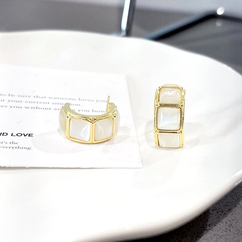 ZHONGTAI Sweet and little fresh earrings 18.8mmx8.8mm French C-type cat's eye stone earrings, niche high-end feel earrings, minimalist cat's eye electroplated earrings